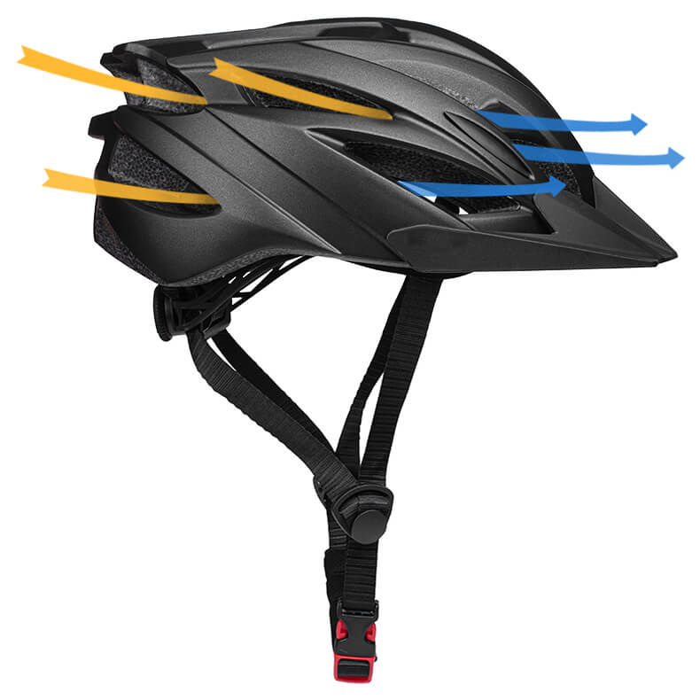 Based on the shape of ordinary cycling helmets, we have added a detachable tapered brim to the Riding Warrior mens cycle helmets, which can not only reduce wind resistance, but also shade. Up to 25 air guide slots allow you to dissipate the exhausted heat in time when you are riding at high speed. The inner curve of the ergonomic design creates a more comfortable wearing feeling for you.