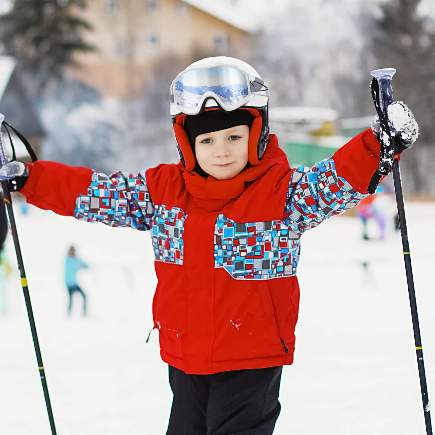 The ALMO silver snow goggles lens is designed with a double-layered structure. The CA inner layer and PC outer layer are sturdy enough to resist collision and shock if kids fall accidentally. It will not break easily with collision and falling.